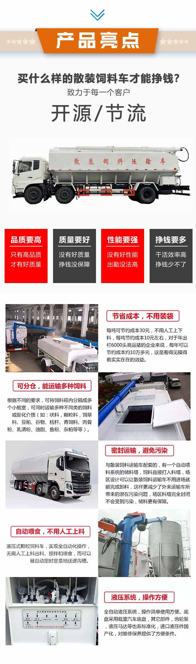 (4)料罐容積:12-14方或者17方,2個獨立倉,實載:豬料9噸,雞料10噸