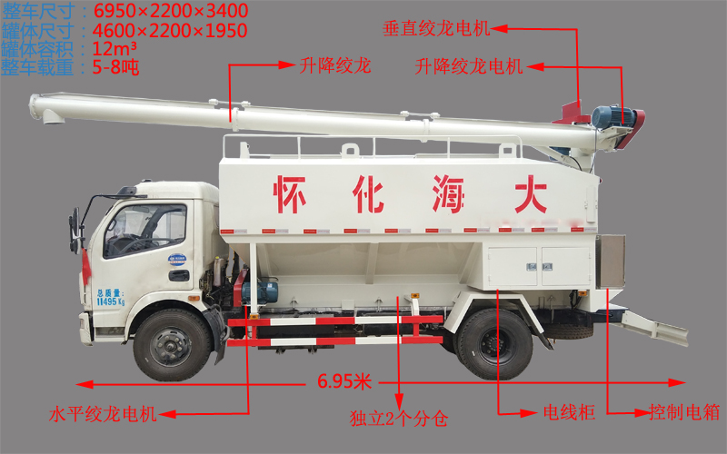 順序和速度,倉室數量可根據用戶需求增減。絞龍最大舉升仰角60-80度。頂部絞龍的舉升旋轉均為液壓控制,