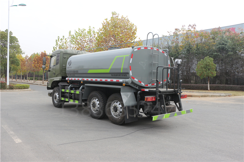 14,罐體采用武鋼優質碳鋼板制作,罐體厚度為4mm,底板和副梁4.5mm,拼板和罐體封頭全自動焊,帶消防栓接口自流口,兩根輸水管,前沖,后灑,側噴,尾部操作平臺,主管道加粗為76,配綠化水炮,水炮射程30-35米