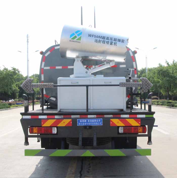 瑞沃80米霧炮車_福田瑞沃ES7抑塵車_瑞沃60米霧炮車_湖北盈通專用汽車有限公司,該車用途為抑塵降霾.主要裝置為罐體及噴霧裝置.罐體總?cè)萘?/span>:10.54立方米,罐體有效容積:10立方米,罐體外形尺寸(×長軸×短軸)(mm):2800×2450×1720.ABS控制器型號為CM4XL-4S/4M,ABS控制器生產(chǎn)企業(yè)為廣州瑞立科密汽車電子股份有限公司.側(cè)、后防護(hù)材料均為:Q235碳鋼,連接方式均為:螺栓連接,后部防護(hù)截面尺寸(mm):120×50,后部防護(hù)離地高度(mm):470.僅采用底盤3950mm軸距改裝.選裝前部電子炮樣式;選裝前部不帶電子炮.當(dāng)前部選裝不帶電子炮時,車長7780mm,無前伸.當(dāng)前部選裝帶電子炮時,車長8280mm,前伸為500mm.隨底盤選裝新前圍及LOGO.選裝前面板"福田·領(lǐng)航"裝飾字樣.