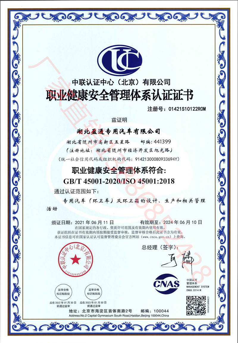 14001環(huán)境管理、OHSAS18001職業(yè)健康安全管理等體系認(rèn)證、3C強制性認(rèn)證、汽車節(jié)能環(huán)保認(rèn)證,汽車免征認(rèn)證,美國機械工程師阿斯米(ASME)認(rèn)證、歐盟協(xié)議ADR認(rèn)證。取得了各類重點生產(chǎn)資質(zhì):