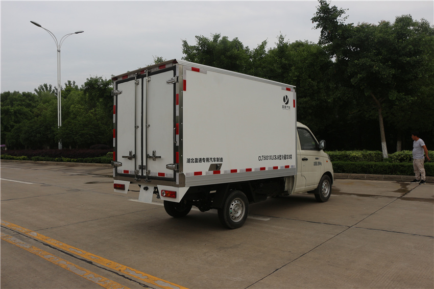 祥菱V汽油冷藏車,國六藍牌汽油冷藏車,藍牌汽油7方冷藏車,藍牌分體式冷藏車,汽油大方量冷藏車,該車用于冷藏運輸的廂式汽車,裝備有隔熱結構的車廂和制冷裝置;貨廂頂部封閉,不可開啟;ABS系統控制方式是雙參數控制,ABS系統控制器型號是YF9,ABS系統控制器生產企業是武漢元豐汽車電控系統有限公司.采用發動機及油耗值(L/100Km):DAM15KR/7.7,DAM16KR/7.7;選裝直接供電ETC車載裝置;隨底盤選裝駕駛室。選裝側門樣式,選裝后部樣式;選裝同等功率制冷機組,外觀形狀可不同。該車型整備質量不包含備胎、滅火器、隨車工具。貨廂重量為600kg,底板材質為彩鋼板+擠塑板,厚度為80mm,側板材質為彩鋼板+擠塑板, 厚度為80mm或底板材質為玻璃鋼板+擠塑板,厚度為80mm,側板材質為玻璃鋼板+擠塑板,厚度為80mm