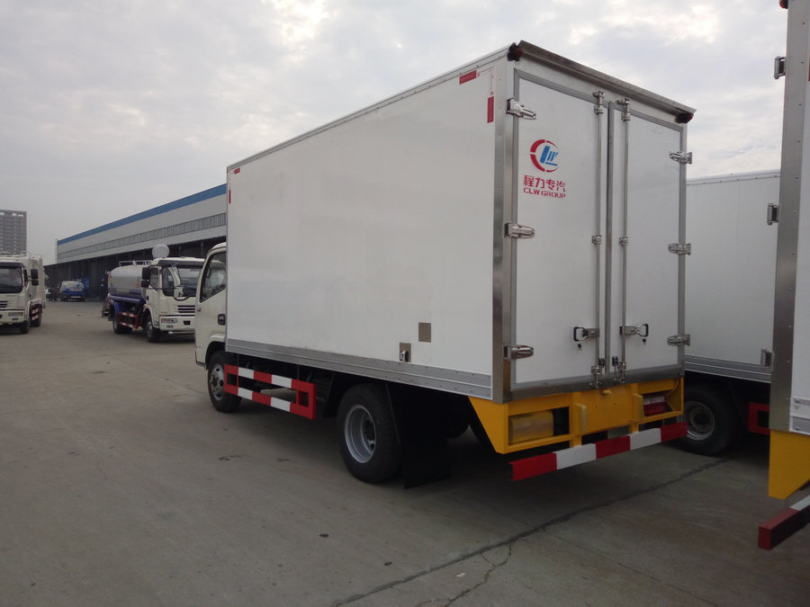 冷藏車廂體:采用國標A級聚氨酯保溫材料,厚度為8厘米,廂體內外采用玻璃鋼材質全包裹。不銹鋼鎖件。包角、包邊鋁合金型材。底盤采用高強度花紋鋁板定制。可選裝肉鉤導軌,和底部通風槽。