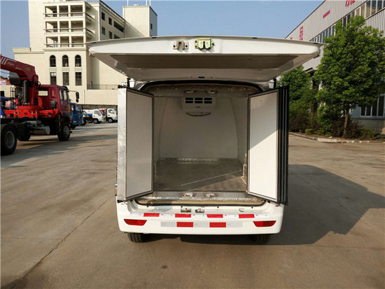 冷藏車廂體:采用國標A級聚氨酯保溫材料,厚度為8厘米,廂體內外采用玻璃鋼材質全包裹。不銹鋼鎖件。包角、包邊鋁合金型材。底盤采用高強度花紋鋁板定制。可選裝肉鉤導軌,和底部通風槽。