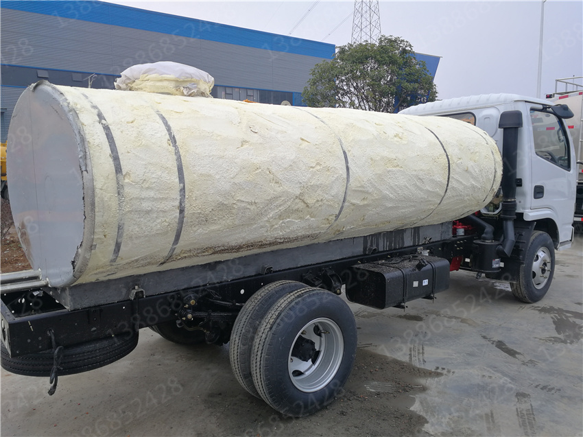 保溫?zé)崴嚺c普通灑水車的區(qū)別就是在水罐外面加了一道保溫層。保溫層的制作是在水罐外面焊接5公分的支撐骨架,然后用保溫材料填充,再在保溫層外面外包一層碳鋼板或者不銹鋼板焊接制作