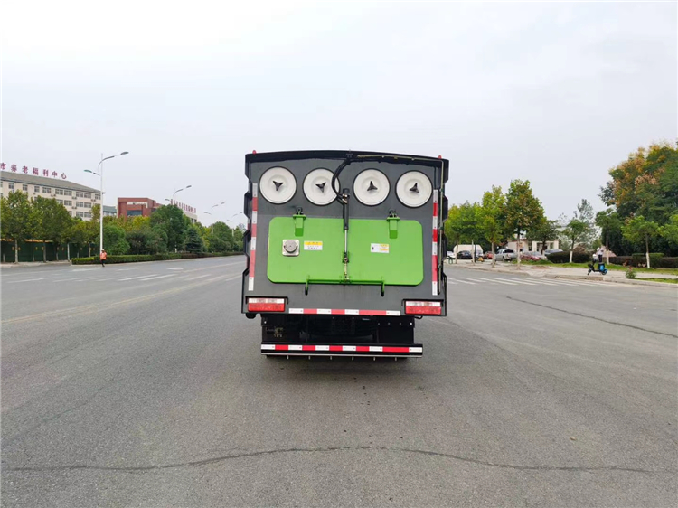 吸塵車垃圾箱上端裝有過濾系統和除塵 裝置,過濾系統為八個濾筒分成四組固定在 出箱體風口前端,采用國外進口覆膜定制濾 芯,橫列布置,更有利于灰塵過濾處理,使 粉塵有進無出,無二次揚塵。垃圾箱內部設 有分隔倉,垃圾分類存放