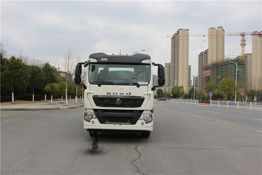 重汽豪沃灑水車_豪沃HOWO15方灑水車_重汽15方灑水車_豪沃灑水車價格,該車主要用于城鄉園林綠化,路面噴灑,除塵和降溫;主要裝置為水罐及噴灑裝置;罐體有效容積:11.34立方米;罐體外形尺寸(×長軸×短軸)(mm):5200×2300×1390;隨底盤選裝駕駛室;側、后防護材料均為:Q235碳鋼,連接方式均為:螺栓連接,后部防護截面尺寸(mm):120×50,后部防護離地高度(mm):460;ABS系統控制器生產企業/型號為威伯科(上海)管理有限公司/4460046300;選裝EBS,EBS系統控制器生產企業/型號為威伯科(上海)管理有限公司/EBS3。選裝限速裝置,最高車速(km/h)8089
