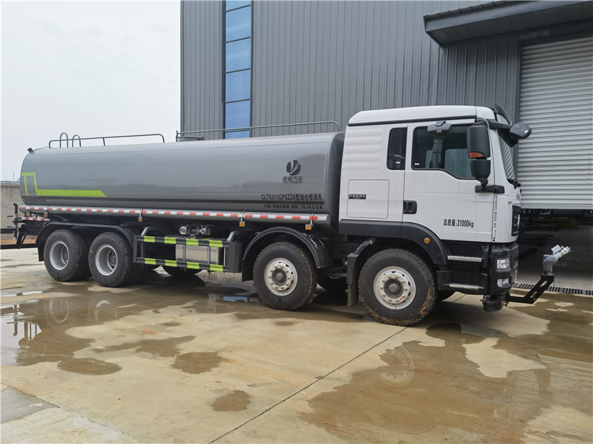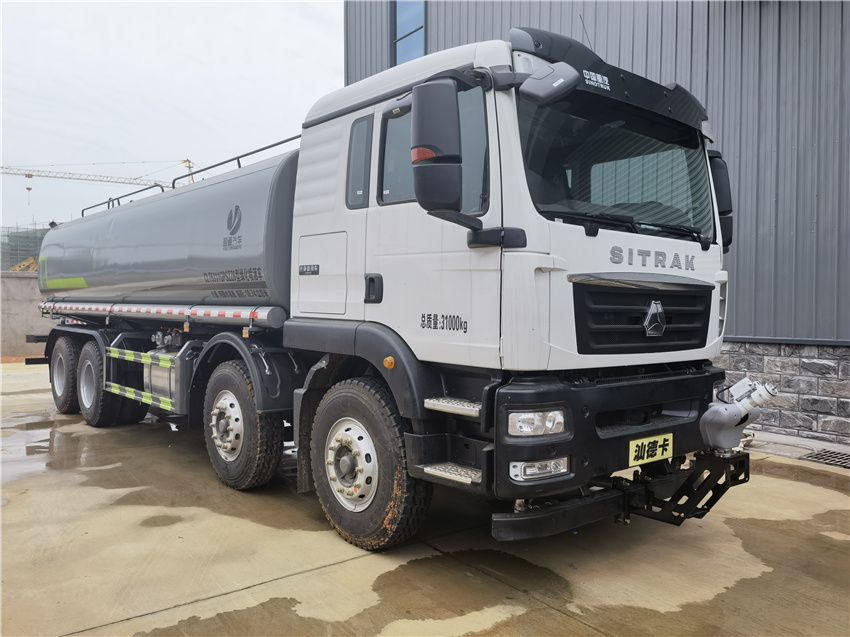 汕德卡25方灑水車_重汽8x4灑水車_國六25方灑水車_前四后八灑水車價格,該車主要用于城鄉(xiāng)園林綠化噴灑作業(yè).主要裝置為罐體及噴灑裝置;罐體總容量:19.67立方米;罐體有效容積:18.74立方米;罐體外形尺寸(長×長軸×短軸)(mm):7300×2450×1650.僅采用軸距(mm):1800+3800+1350改裝.側、后防護材料均為:Q235碳鋼,連接方式均為:螺栓連接,后部防護截面尺寸(mm):120×50,后部防護離地高度(mm):490.ABS系統(tǒng)控制器生產(chǎn)企業(yè)/型號為采埃孚商用車系統(tǒng)(青島)有限公司/4460046300;隨底盤選裝駕駛室,選裝噴霧裝置樣式,選裝自動球閥安裝位置,選裝弧形噴灑裝置,選裝箭頭燈裝置,選裝大工作平臺,選裝前部不帶電子霧炮.選裝電子炮裝置樣式.當前部選裝電子炮裝置時,前伸為500mm,整車長度為11560mm,11750mm.隨底盤選裝限速裝置,限速89km/h. |