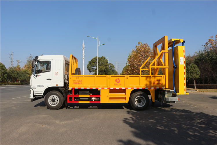 上裝配置:護箱:采用Q235國標邊3mm底板花紋板4mm厚,箱體后部防撞包采用美國進口T90型號,防撞緩沖吸能模塊主要由車載防撞緩沖墊和導向標志架組成,充當施工作業(yè)車輛后方的緩沖衛(wèi)士。如若發(fā)生追尾事故,能夠在肇事車輛和前方施工作業(yè)區(qū)域之間構(gòu)建一個緩沖區(qū)域,通過機具結(jié)構(gòu)變形吸收撞擊的能量,最大限度地降低被保護人員及設(shè)備遭到碰撞的幾率。高性能液壓系統(tǒng),可實現(xiàn)快速舉升和落下操作,方便設(shè)備運輸轉(zhuǎn)場,一鍵啟動功能,舉升和落下防撞裝置,當防撞裝置未完全落下到工作位置或舉升到垂直運輸位置時,會有自動警告音提示。