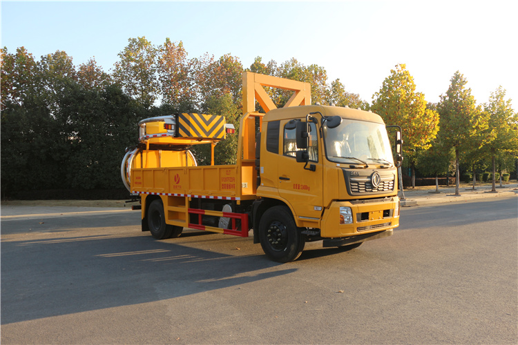 上裝配置:護箱:采用Q235國標邊3mm底板花紋板4mm厚,箱體后部防撞包采用美國進口T90型號,防撞緩沖吸能模塊主要由車載防撞緩沖墊和導向標志架組成,充當施工作業車輛后方的緩沖衛士。如若發生追尾事故,能夠在肇事車輛和前方施工作業區域之間構建一個緩沖區域,通過機具結構變形吸收撞擊的能量,最大限度地降低被保護人員及設備遭到碰撞的幾率。高性能液壓系統,可實現快速舉升和落下操作,方便設備運輸轉場,一鍵啟動功能,舉升和落下防撞裝置,當防撞裝置未完全落下到工作位置或舉升到垂直運輸位置時,會有自動警告音提示。