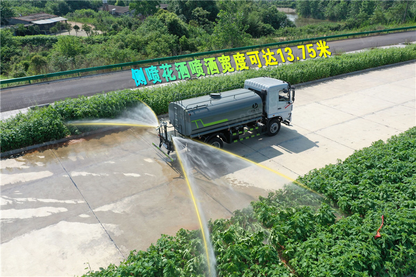 東風華神10方抑塵車價格 我公司產品標配前沖后灑、側噴、后置式工作平臺、平臺上有高壓水炮(可360°旋轉,可調成柱狀射程35米,也可調成霧狀射程15米,可調成:直沖狀、大雨、中雨、小雨、毛毛雨),配備大功率專用灑水泵,取力器,雜物過濾網,國標通用65型消防接口(可通過消防栓加水)、1套自流球閥系統(可自吸自排,可從河里或池塘抽水到罐體,吸程7米),2根引水鋼絲膠管。水泵、取力器、球閥、濾網均為國家標準產品,主管道加粗,法蘭墊、法蘭盤加厚,萬向前沖,大通徑球閥,具有性能優良,工作可靠、效率高、流量大、維修方便等特點。