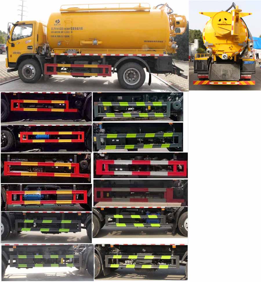 該車(chē)用于下水道排污及疏通,專用裝置:罐體、吸污泵、清洗沖刷總成.該車(chē)輛具有舉升功能,罐體外形尺寸(罐體總長(zhǎng)×直徑)(mm):4900×1750(前面1600mm為清水罐,后部3300mm為污水罐);污水罐總?cè)萘?/span>:6.91立方米,污水罐有效容積:6.58立方米,介質(zhì):液態(tài)污物,密度800千克/立方米;清水罐有效容積:3.6立方米,介質(zhì):水,密度1000千克/立方米;清水罐和污水罐為獨(dú)立罐體,清洗功能時(shí)用清水罐,吸污功能時(shí)用污水罐,污水罐和清水罐不可同時(shí)滿載,兩罐不可同時(shí)使用.ABS型號(hào)/廠家:ABS型號(hào):ABS/ASR-24V-4S/4M,廠家:襄陽(yáng)東風(fēng)隆誠(chéng)機(jī)械有限責(zé)任公司;側(cè)、后防護(hù)材料均為:Q235碳鋼,側(cè)、后防護(hù)均為螺栓連接,后部防護(hù)截面尺寸(mm):120×50,后部防護(hù)離地高度(mm):380;僅采用底盤(pán)3800mm軸距改裝.隨底盤(pán)選裝駕駛室,選裝油箱位置.選裝后部出口樣式,選裝側(cè)面樣式.隨底盤(pán)選裝車(chē)速89km/h. |